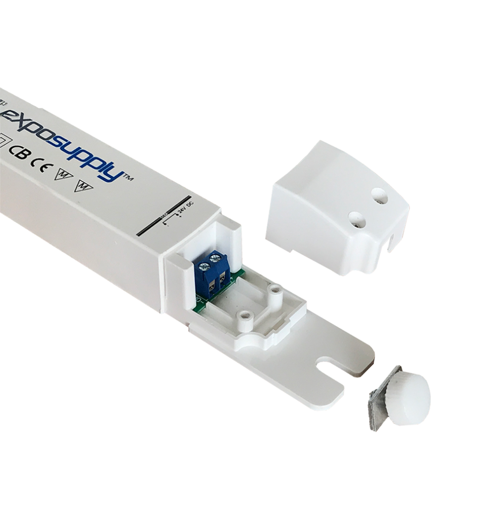 The LED driver reduces the voltage of the power network to 24V. Depending on how many edgelit or backlit modules are connected together, a driver of 75Watt, 120Watt or even 240Watt can be chosen.
