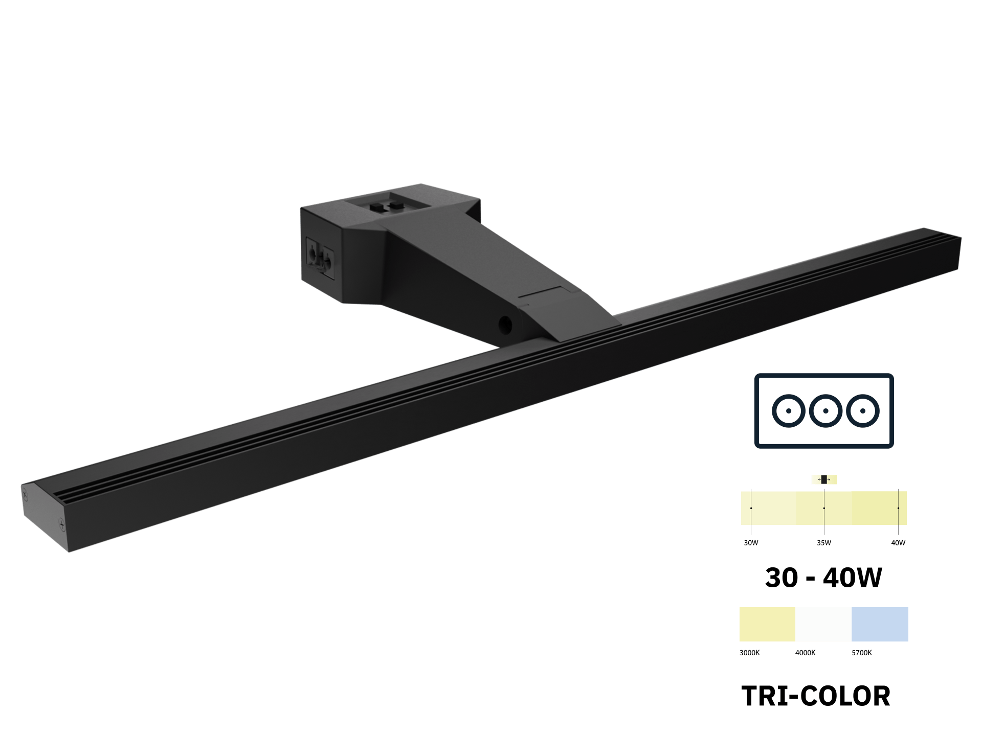 - Color temperature Tri-color (3000K + 4000K + 5700K)